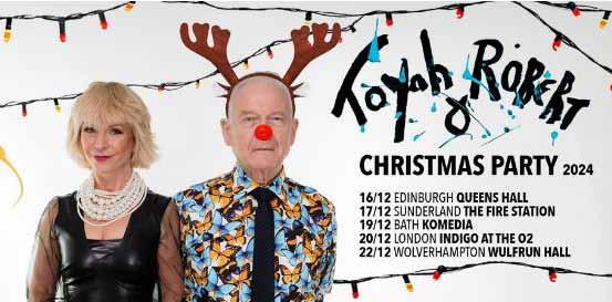 Following the runaway success of their Sunday Lunch YouTube series, and their critically acclaimed Tour of ‘23, Toyah Willcox and Robert Fripp are bursting out of their kitchen again, for the Christmas Party 2024 and hitting the road for an evening of classic rock in the company of two rock legends and their band.