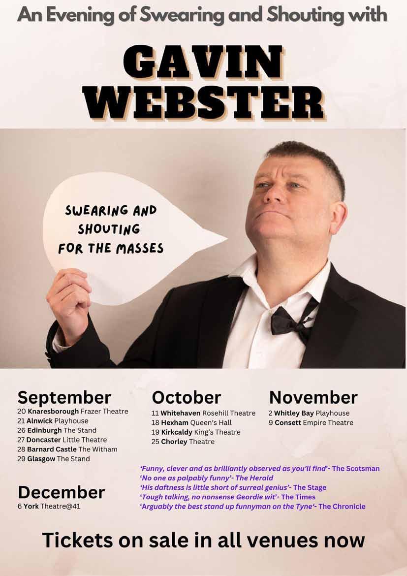 Mark brings his newest outing Gaffa Tapes to the Newcastle Stand 27th October and then the Alnwick playhouse 31st January and Barnard Castle 1st February.