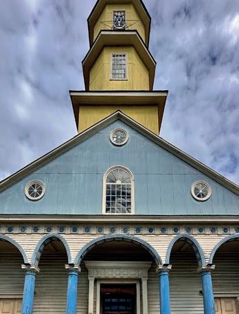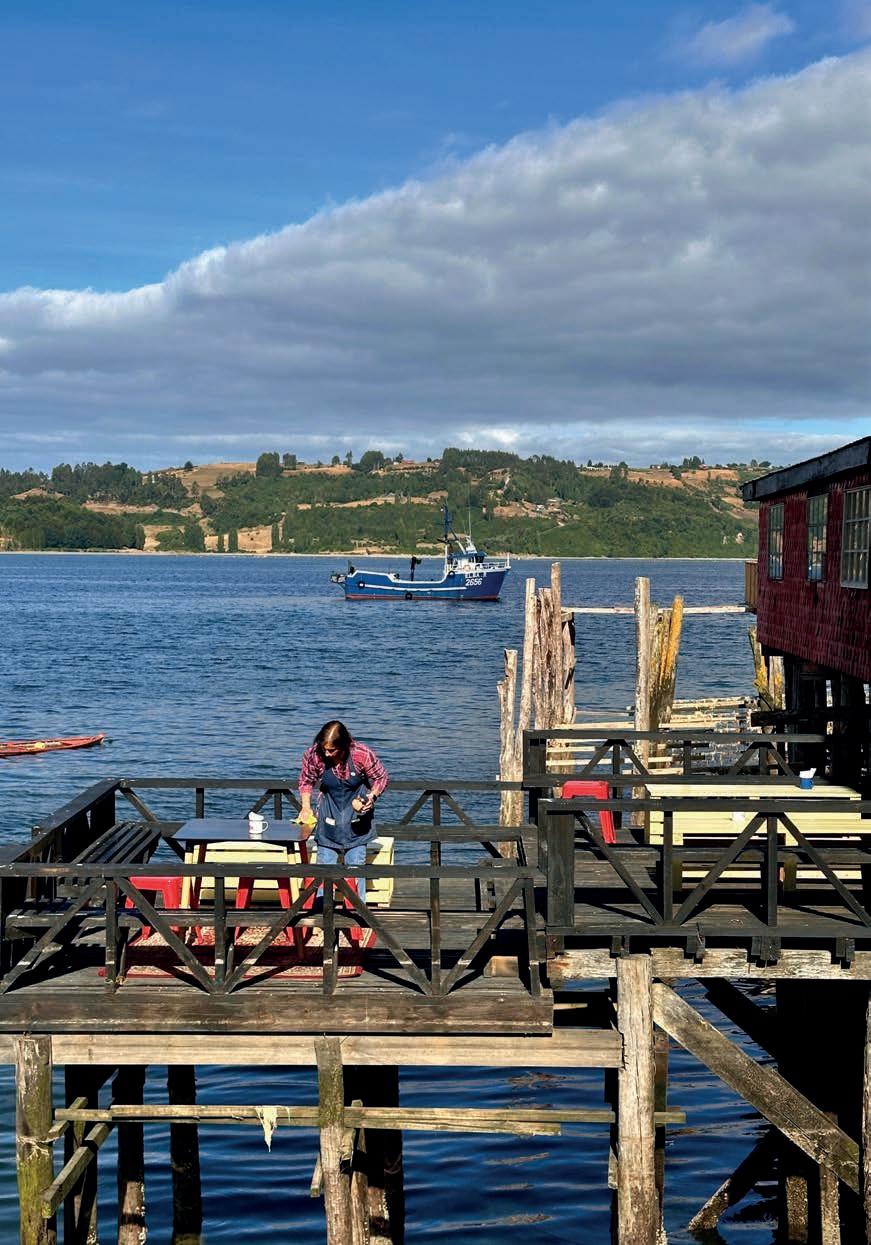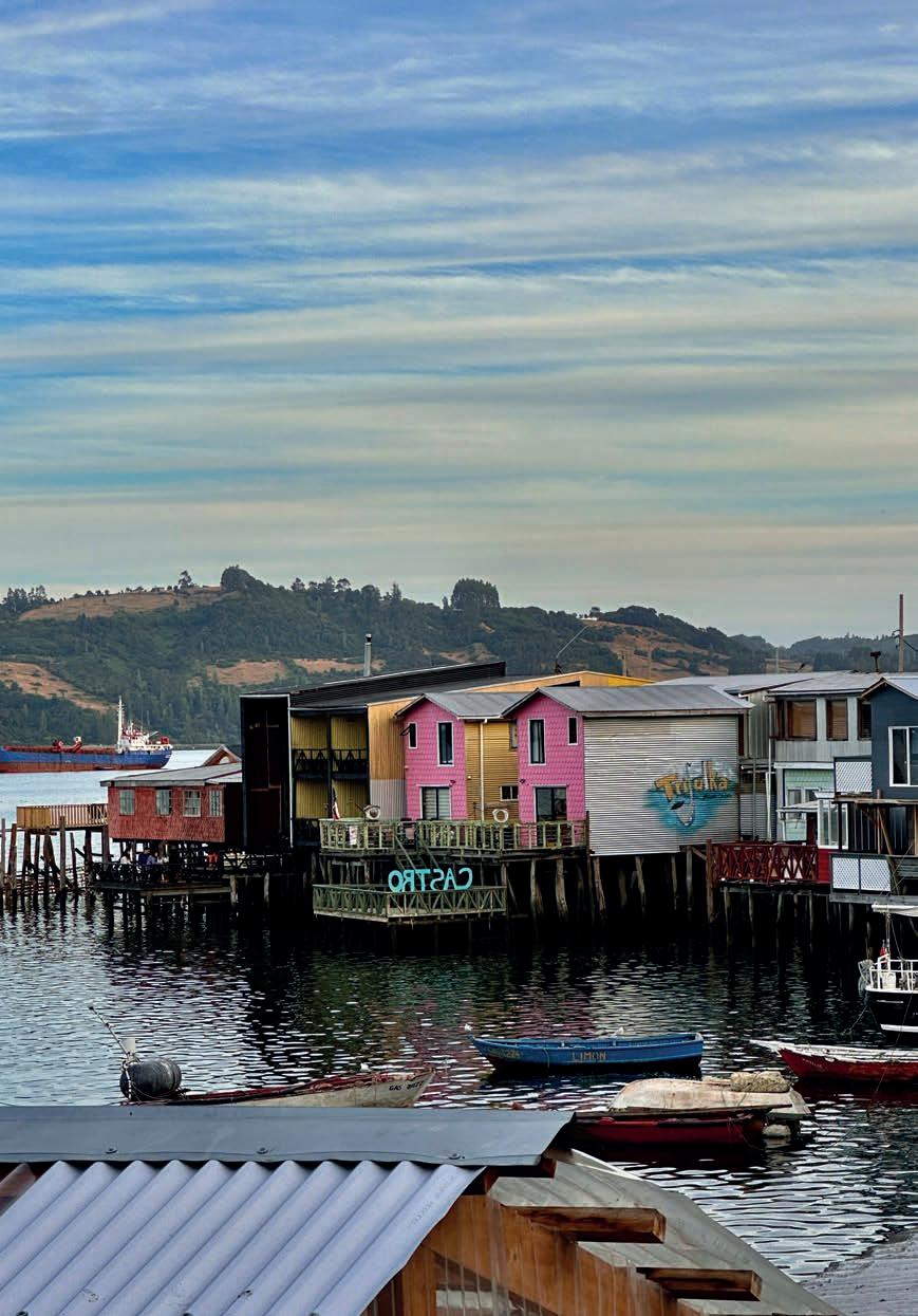 Ho trascorso quattro giorni girovagando da un’isola all’altra in ferry, da una chiesa all’altra e da una cittadina all’altra in auto. Ho camminato tra i banchi colorati di mercati dove la lana di pecora è protagonista di sciarpe, cappelli, guanti, calze, maglioni... Ho ammirato le chiese di Dalcahue, Quinchao, Achao, Chonchi, una più bella dell’altra. Ho vissuto tra alte e basse maree che rendono insoliti i risvegli in una casa sulle pala tte. I “pala tos” del quartiere di Gamboa sono il variopin-