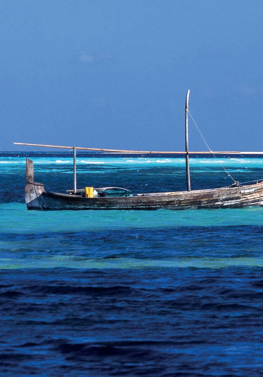 Per chi ama il mare limpido con fondali colorati dai pesci, le spiagge di sabbianissima, i palmizi ombreggianti. Ma anche i villaggi di pescatori con barche particolari e mercatini, dove la gente sorride, gli sguardi sono curiosi ma mai invadenti. Ma soprattutto per chi a questi elementi, rintracciabili in altre isole lontane, vuole aggiungere l’avventura. Nelle Maldive esistono ancora arcipelaghi sconosciuti ai più, perfetti per loro. Sono raggiungibili solo via mare da Malè, la capitale dell’arcipelago e anche la più piccola capitale al mondo, essendo costruita su un’isola di soli 2km di super cie. Con un safari boat, che per 14-15 giorni diventa la propria casa, da dove partire per le più incredibili esplorazioni.