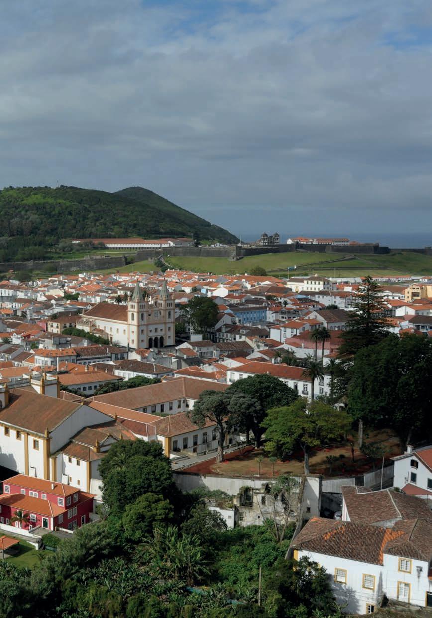 In basso, porticciolo di Angra do Heroismo e la cattedrale.