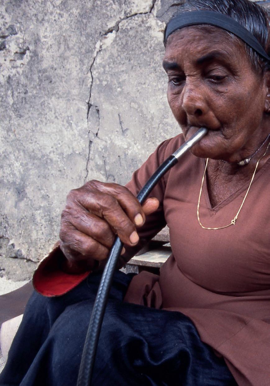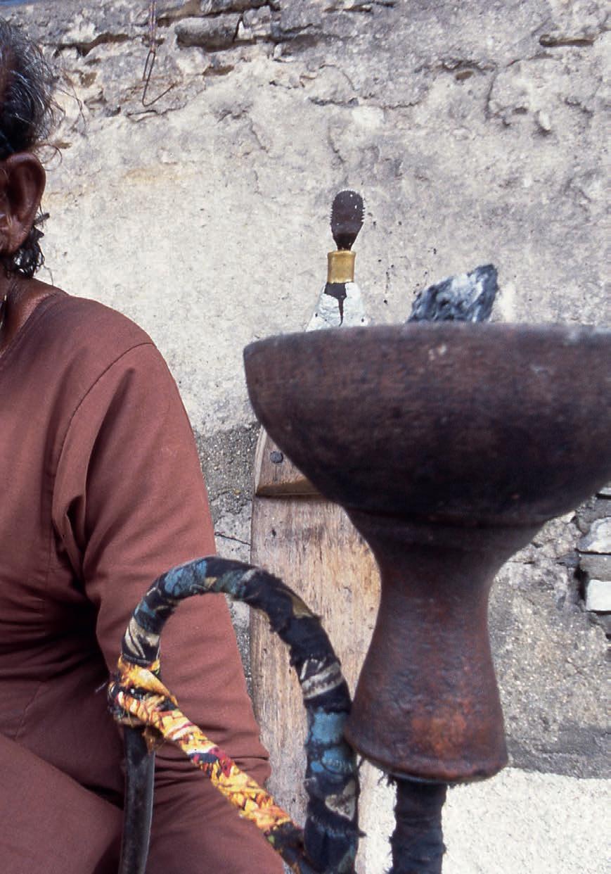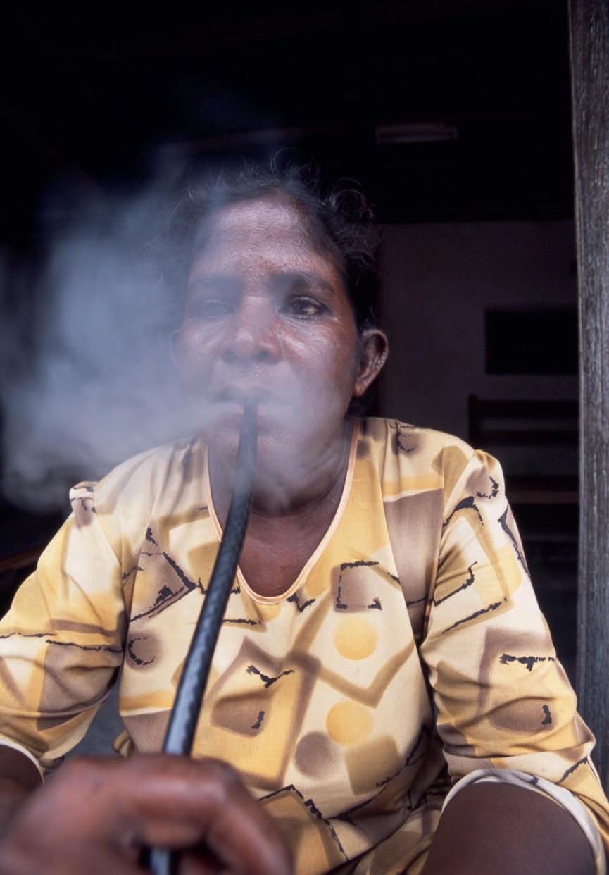 Donna con narghilé nell’isola Hithadhoo, atollo Laacuna.