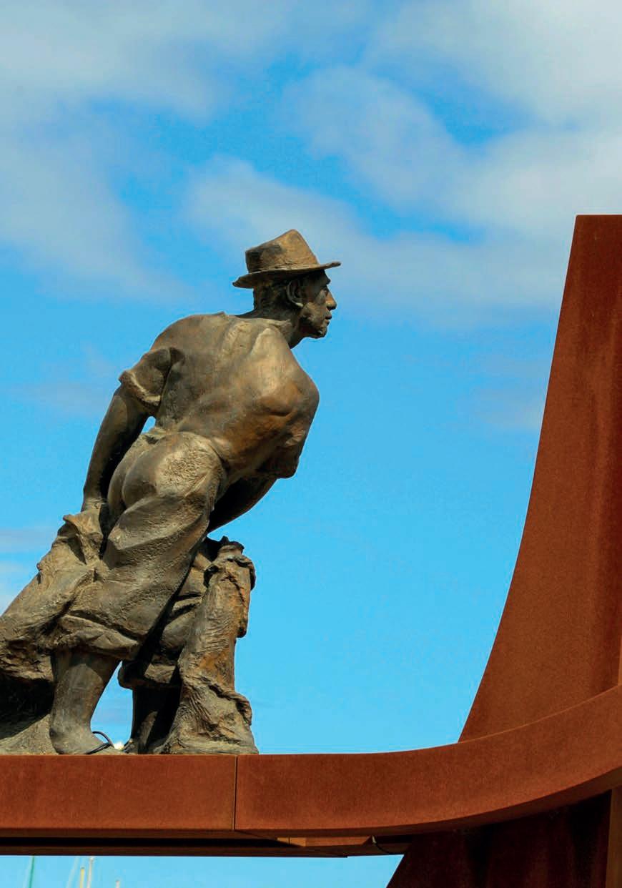 A destra, monumento alle fatiche del contadino nel borgo di Vitoria.