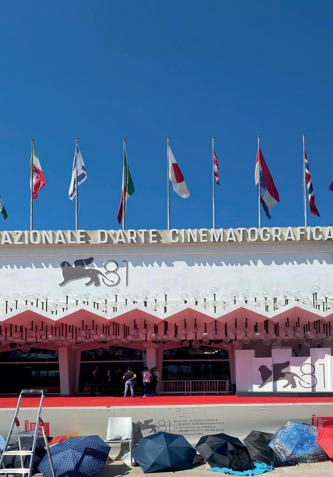 Appena si sbarca sull’isola la prima impressione è quella di fare un viaggio a ritroso. Tutto sembra essersi fermato. La vita scorre lentamente. I negozi fanno lunghi intervalli nell’orario del pranzo, oppure chiudono mezza giornata. Quello che non si riesce a fare si può rimandare, tanto non succede niente. A ne agosto, tutto cambia. Basta prendere l’autobus a piazza Santa Maria Elisabetta e, dopo poche fermate, vicino al Casinò e al Palazzo del Cinema, si è catapultati nella frenesia e nell’eccitazione della Mostra del Cinema, che dal 1932 è il festival più antico e oggi tra i più prestigiosi del mondo. Grazie anche all’intelligente e appassionata direzione di Alberto Barbera. Che dal 2011 con il suo straordinario team riesce a superare ogni dif coltà (il Covid, gli scioperi di attori e registi di Hollywood, le turbolenze politiche) e a intercet-