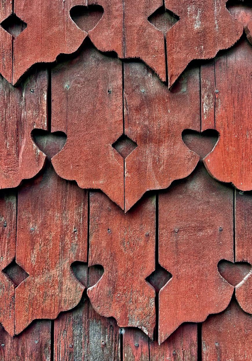 A destra, scorcio della natura di Castro. Nelle pagine seguenti, legno colorato e particolare delle tegole in legno di case e chiese di Chiloé e una casa su palafitte di Castro.