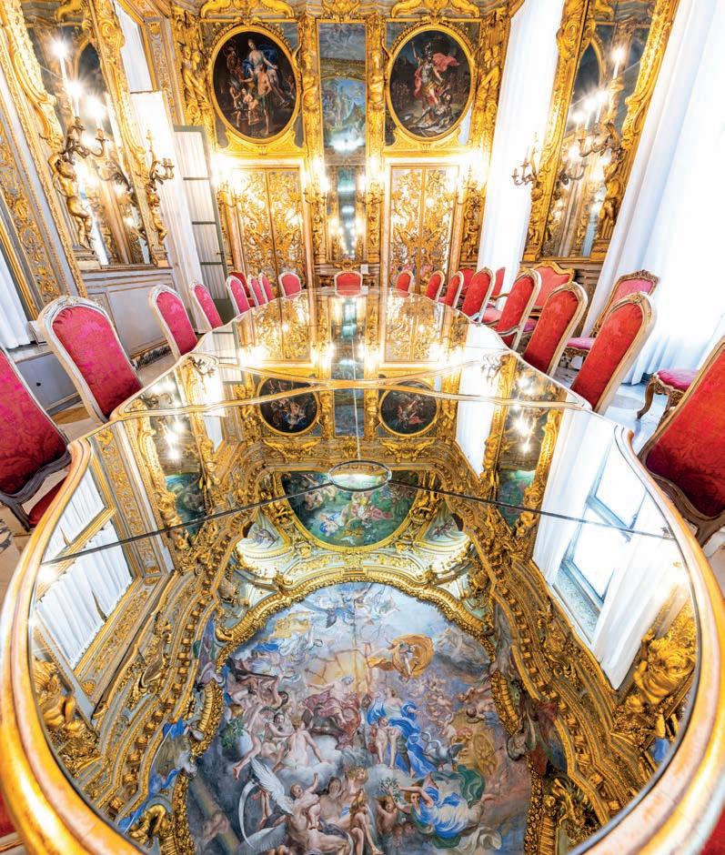 Il Palazzo del Cinema, da sempre la sede principale della Mostra. Sul red carpet davanti alla Hall, prima di entrare nella Sala Grande, le più famose star s lano per i fotogra . Il pubblico attende per ore sotto il sole o la pioggia, lasciando gli ombrelli come segnaposto per assentarsi in qualche momento. Nelle pagine precedenti, in basso a sinistra il regista Luca Guadagnino e l’attore Daniel Craig, a destra l’attore Fabio Testi nel mitico Blue Bar dell’Hotel Excelsior.