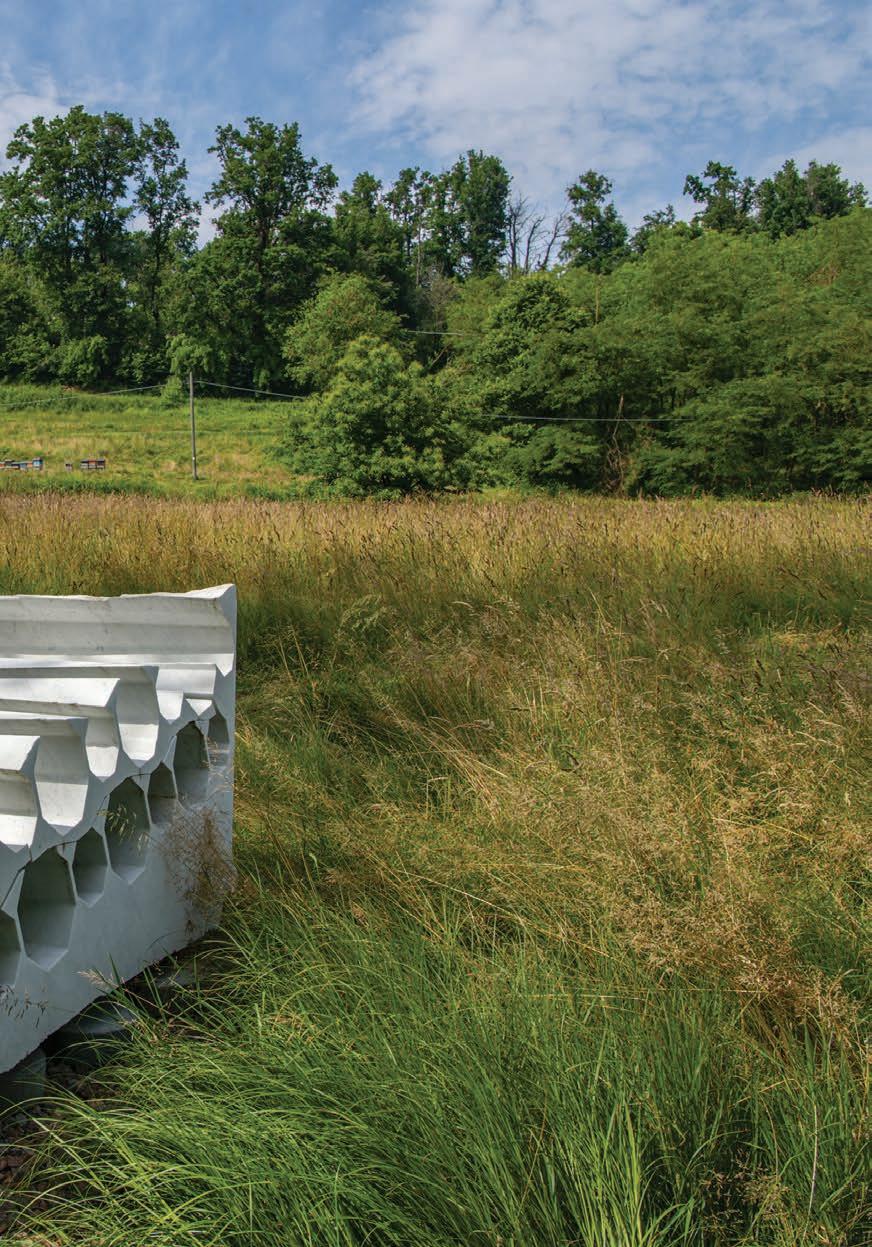 In basso, de_limitare#1 tra le vigne, a destra l’installazione Equinozio presso il centro visita di The Walk Pagine seguenti: Alberi Scultura e de_limitare#2
