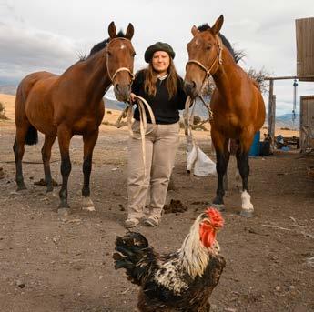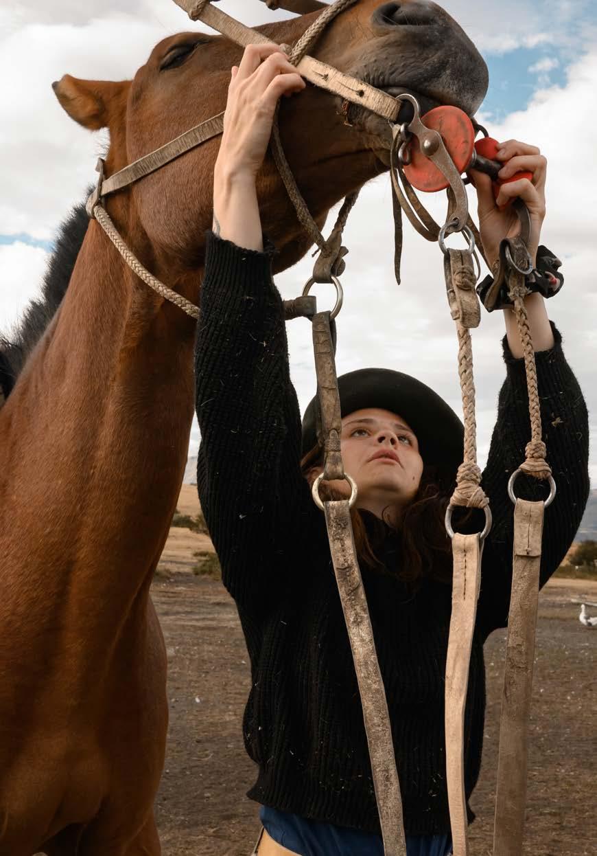 Nella pagina accanto, Estela prepara il suo cavallo per una cavalcata: andrà a radunare gli altri cavalli sparsi tra valli e boschi.