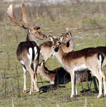 In basso, alcuni daini, presenza costante e facile da avvistare nelle radure che si aprono improvvisamente nella fitta boscaglia.