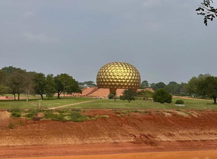 degli uccelli. C’è una energia straordinaria. Esco e a quel punto è d’obbligo una visita ad Auroville, situata a una manciata di chilometri da Pondicherry. Nata nel 1968 da una visione della Mère, Auroville non è solo un progetto e una città nascosta tra alberi antichi e polvere rossa del Tamil Nadu. È un invito a vivere diversamente, con più cuore, consapevolezza, rispetto per sé stessi, per gli altri e per la Terra. Un luogo dove non si compete ma si collabora. Dove non si possiede ma si condivide. Dove l’essere conta più dell’avere. Purtroppo è difficile percepire i significati profondi di questo laboratorio vivente. Infatti, il tempo concesso è poco e il percorso obbligato porta al Matrimandir, la monumentale sfera dorata che invita a meditazione e quiete. Torno a Pondicherry per un tramonto alle spalle di Goubert Avenue, il lungomare prospiciente la baia del Bengala con il faro e il monumento a Gandhi alto 4 metri. Domenica è un giro in bicicletta per il quartiere musulmano e in quello Tamil con sosta alla Basilica del Sacro Cuore di Gesù e al mercato in Mahatma Gandhi Road. Pondicherry non è spiagge e mare e non si visita. È un invito a rallentare, a sorridere senza motivo, a lasciarsi sorprendere. Perché Pondicherry si vive.