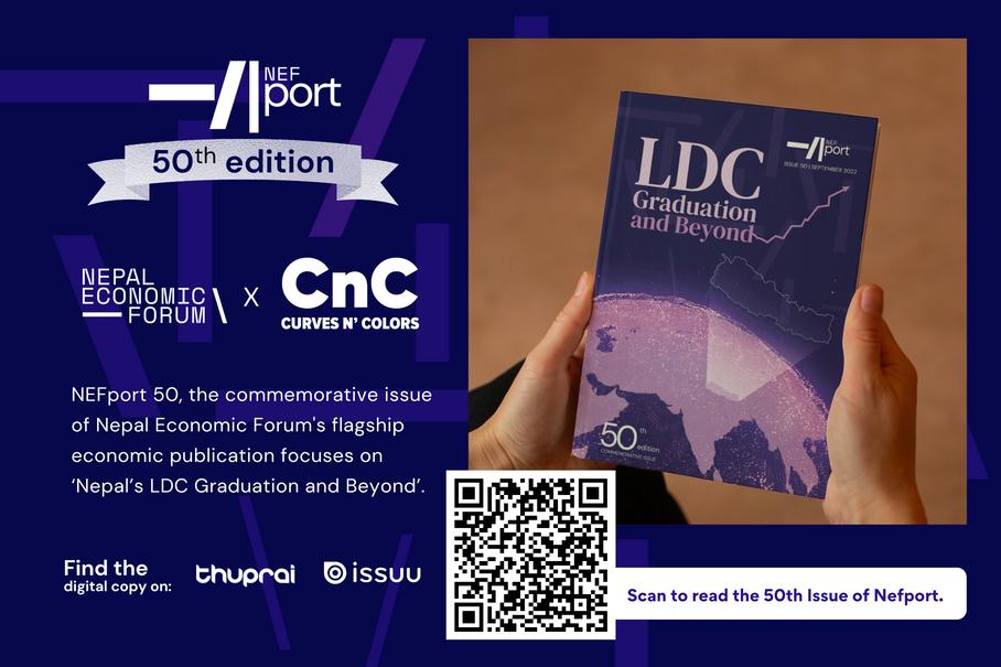 Nefport 50 marked the commemorative issue of NEF's flagship economic publication. The issue aimed at dissecting the existing economic ecosystem and looking at future growth from a sustainable development perspective With this objective, the issue focused on two broad themes - one, the significance of LDC graduation for Nepal, and second, the need to achieve goals that are beyond the graduation targets.