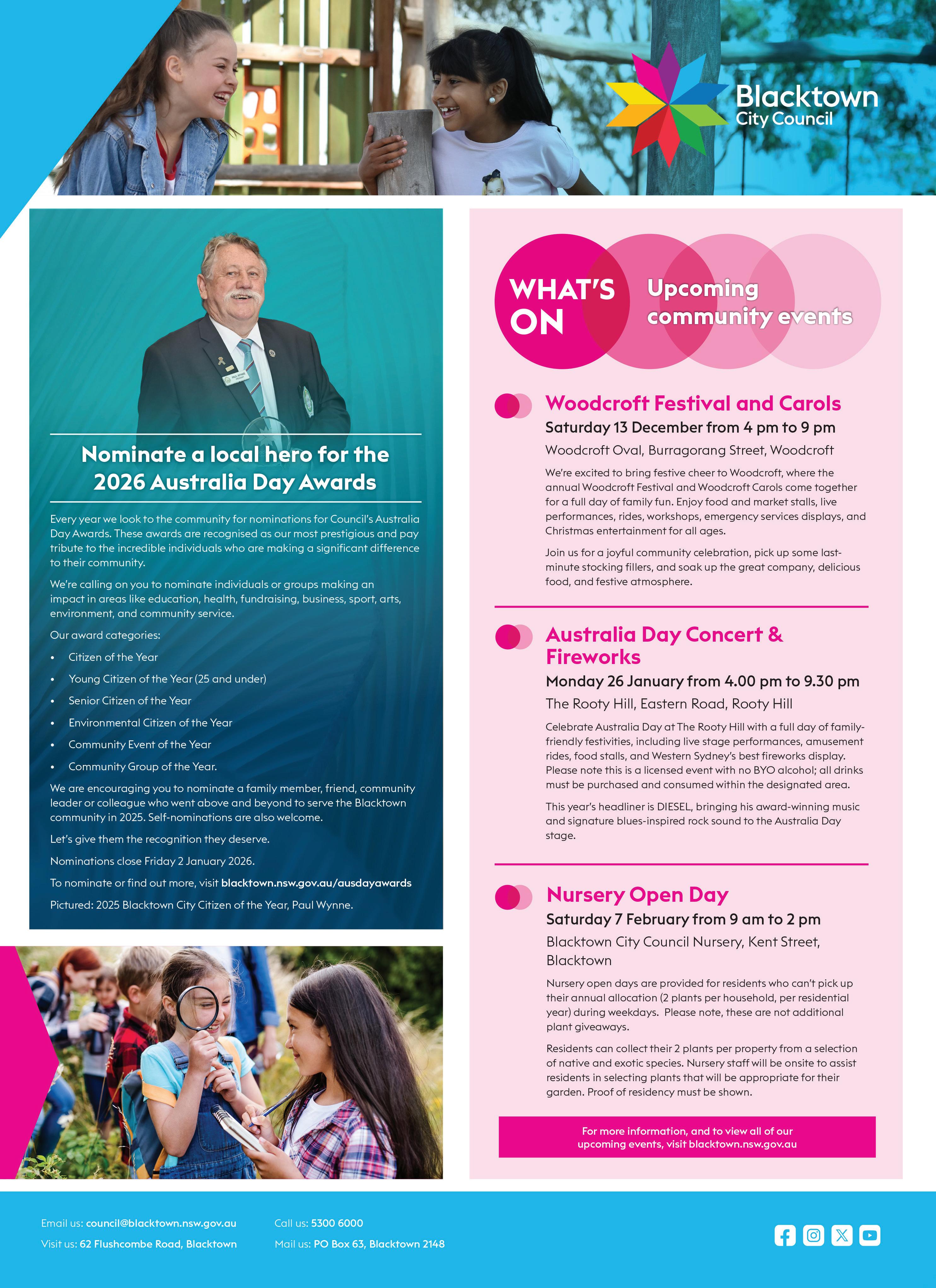 More details on Council’s Australia Day events are available via blacktown.nsw.gov.au/ausday.
