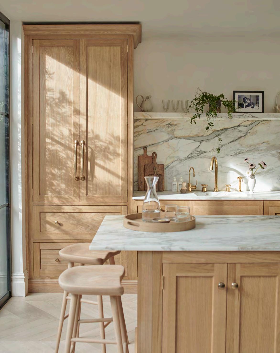 Even the humblest kit can be enhanced with smart details: drawer inserts for spice jars that let you see the labels clearly; drawer dividers for knives that stop them knocking against each other so they stay sharp; narrow niches for chopping boards and tea towels; and the Orford wet store tray, which sits inside your sink cabinet and stops damp cloths cluttering the worktop. Think of it as elevating the everyday.