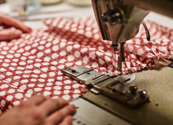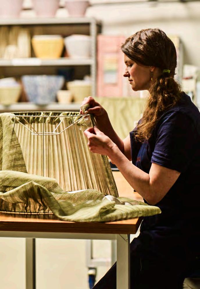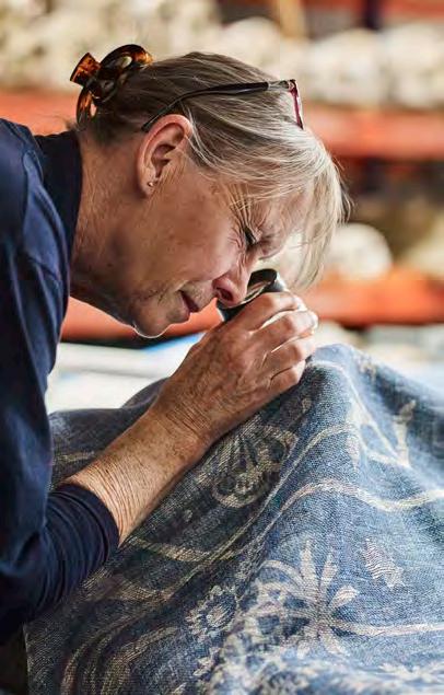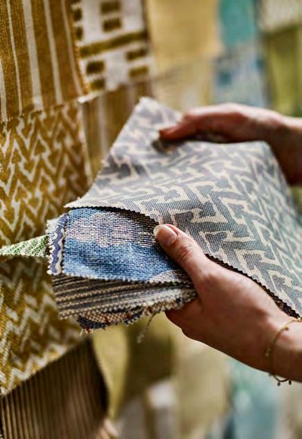 Fermoie’s patterns range from the small-repeat designs they’re so wellknown for, to bold, expressive ones like Shell Grotto. Nature serves as a constant guide for their studio team, as it does for us at Neptune. Cove – one of the fabrics in our limited-edition collection – was originally drawn from a Dorset clifftop overlooking the water. The designer observed a surprising uniformity in the ripples of waves, which formed the basis for this geometric pattern. Inspiration comes in myriad forms, though, and