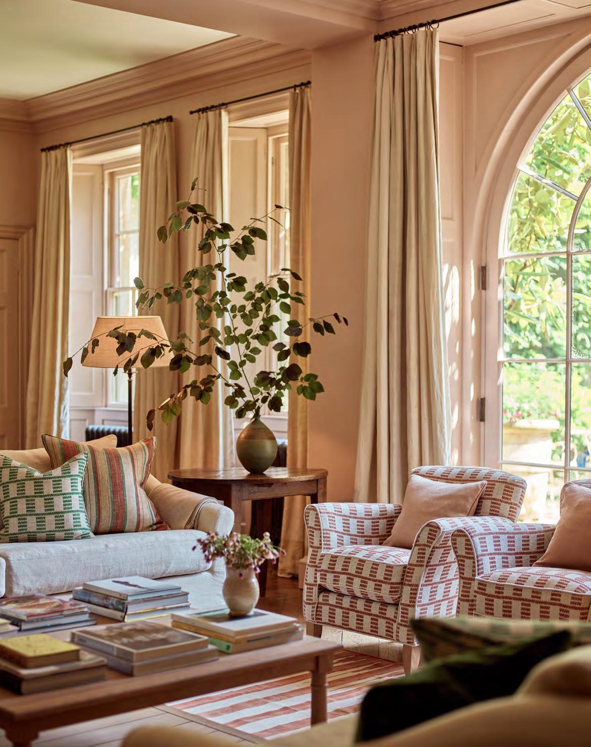 ‘Pattern-mixing can be daunting, so the 60:30:10 principle is a great guideline. 60% would be patterned wallpaper, if you have it, or a large-scale pattern on a sofa or curtains. 30% would be smaller upholstered pieces, then dedicate 10% to a small-scale pattern like a trellis or a ditsy floral.’