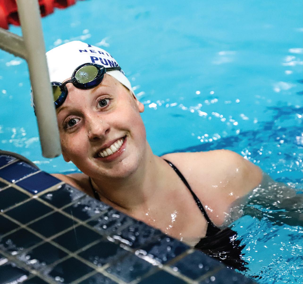 LET’S GIVE IT UP for Brooke Punnewaert ’22, who made big waves, shattering records left and right during her swimming career at Nerinx! Additional