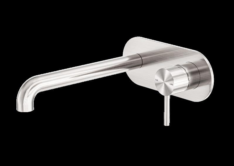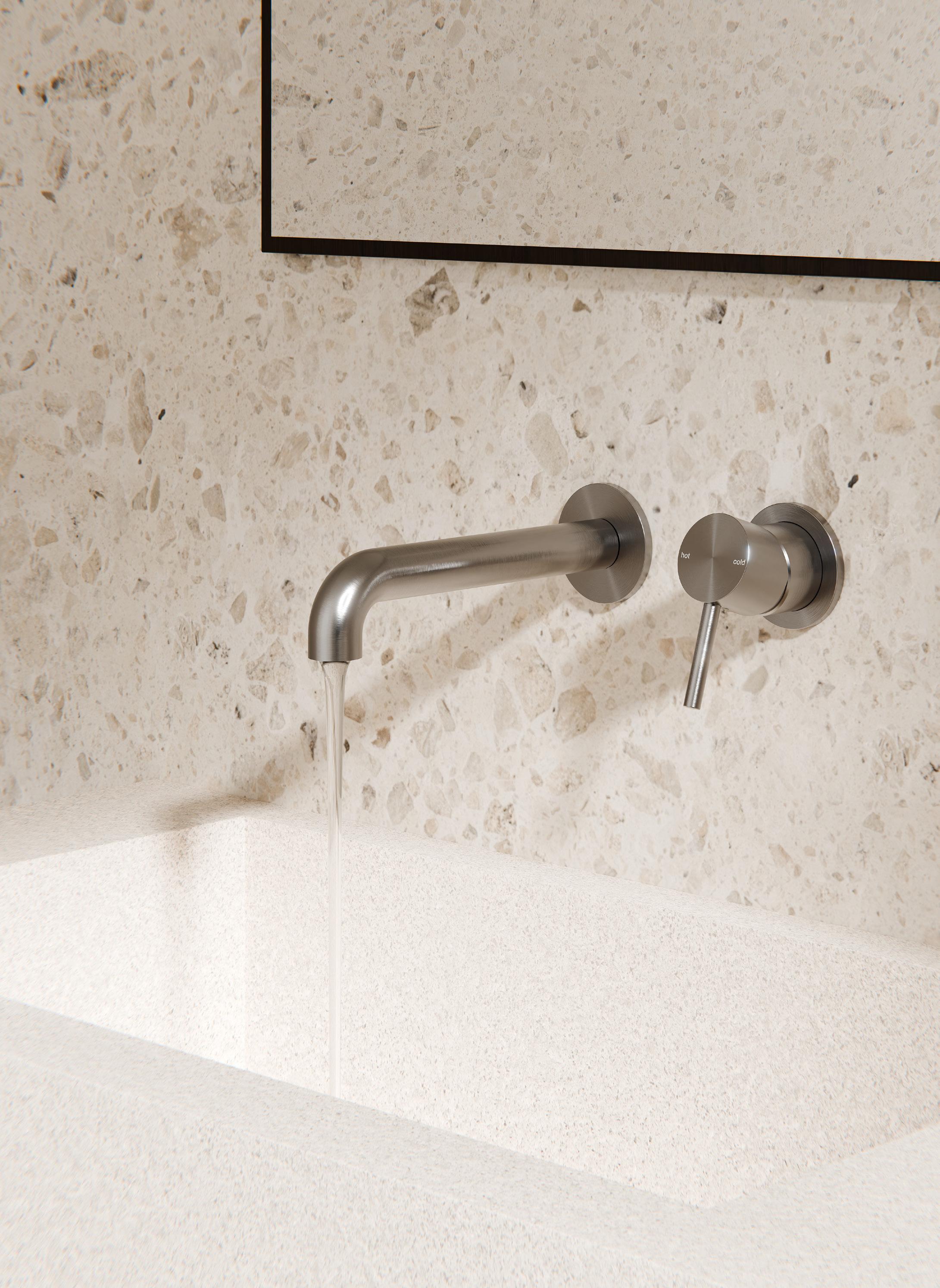 Zen SS316L Wall Basin/Bath Mixer 185mm/230mm Spout Brushed Nickel Wels Rating: 6 Star, 4.5L/Min Wels REG No. T43382/T43383