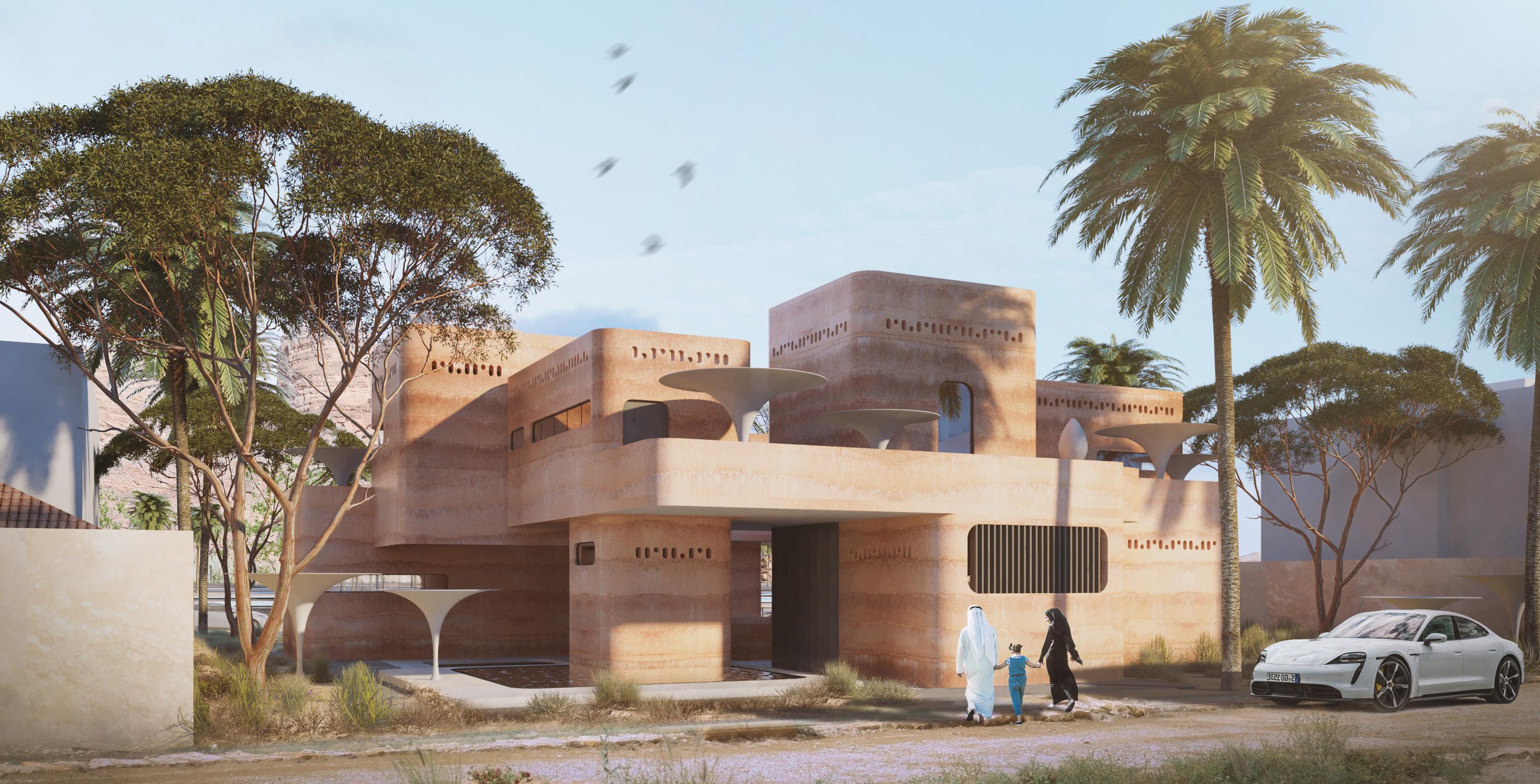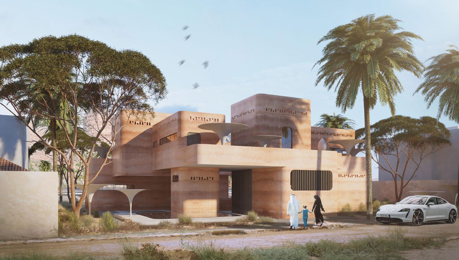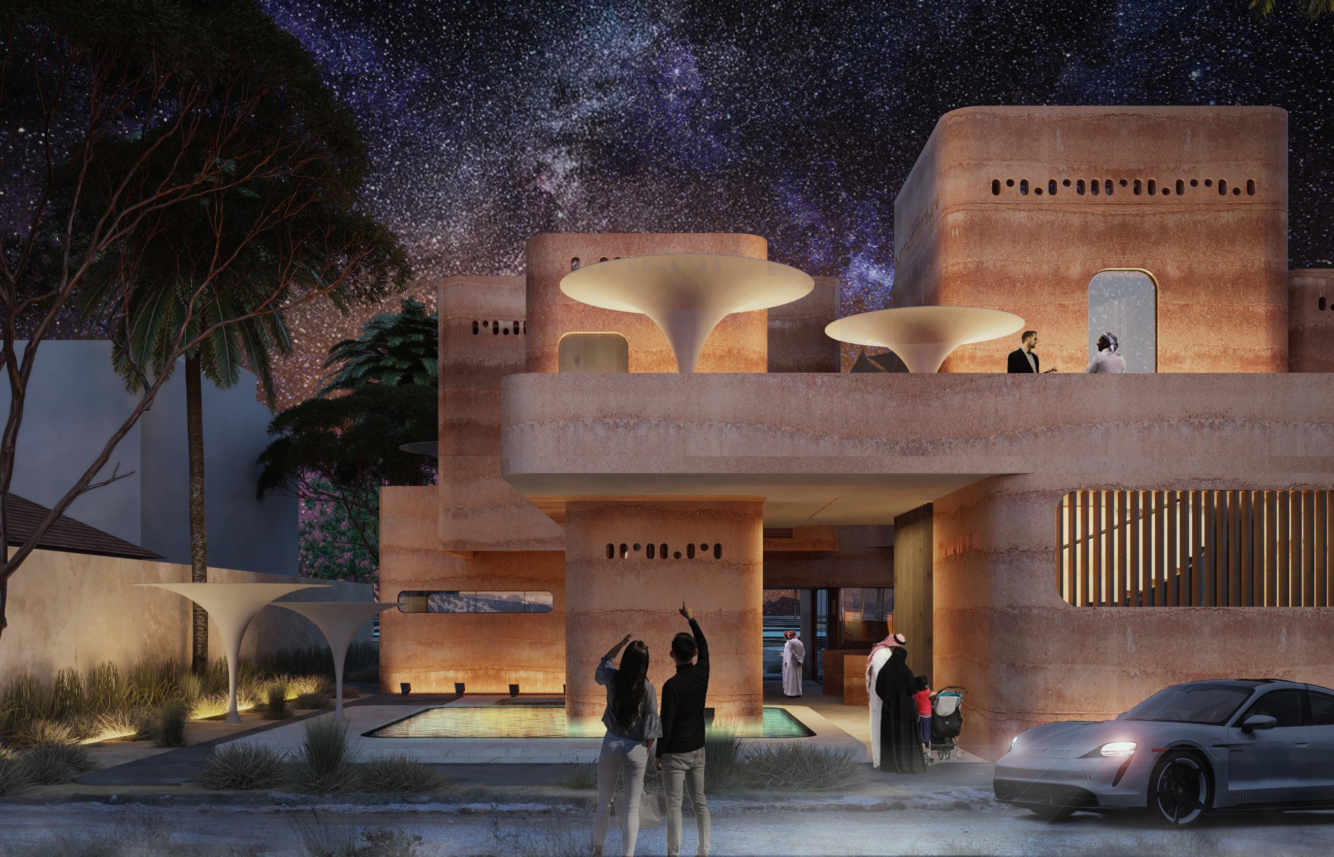 Our design concept is firmly grounded in connecting the heritage and cultural traditions of AlUla with a future vision of sustainability, modern architecture, and everyday SMART home technology. Traditional elements include heritage inspired rammed earth façade, Saudi Arabian patterned fabrics, and a central courtyard with stargazing views. Modern technology ensures sustainable solar-powered energy, water efficiency, non-potable water systems, and a motion-activated outdoor lighting system with low-level warm-coloured LED lighting to suit the heritage requirements of the neighbourhood.