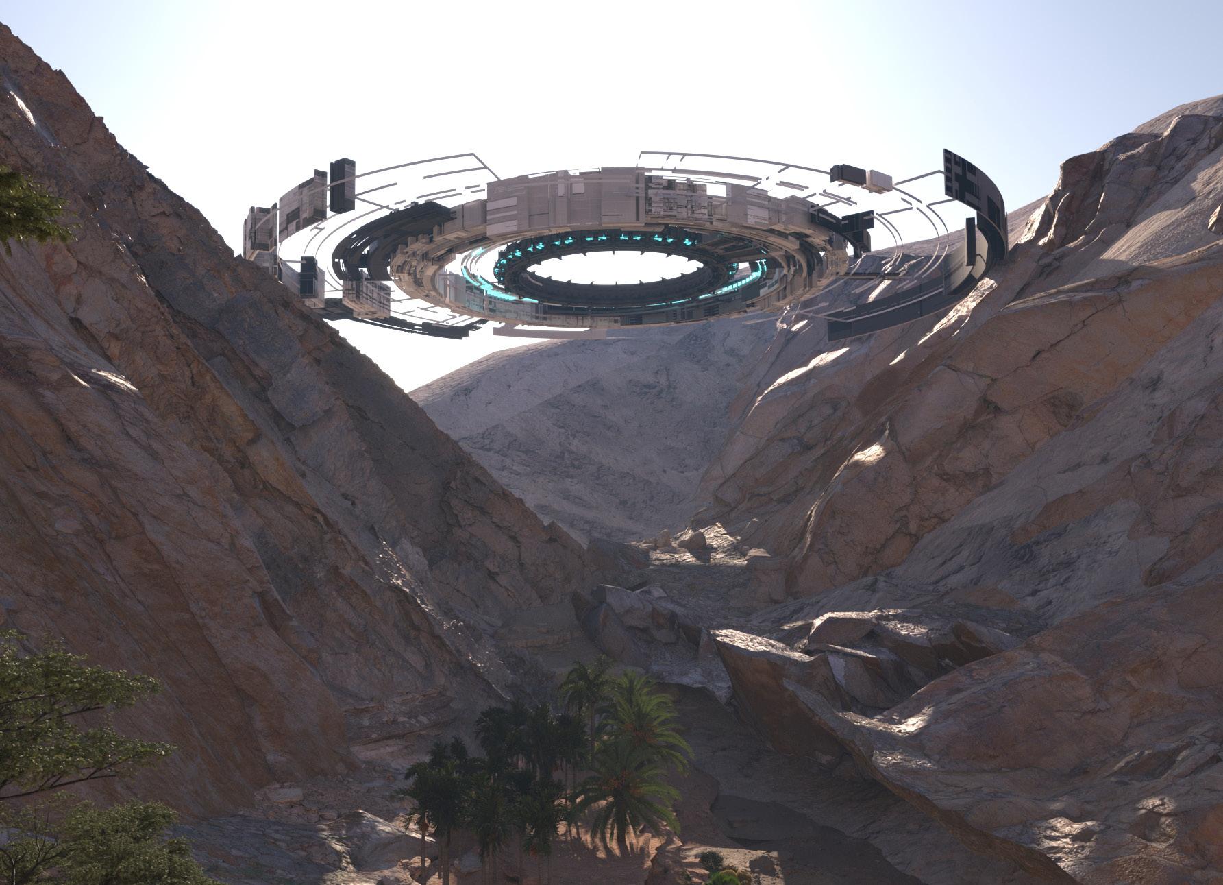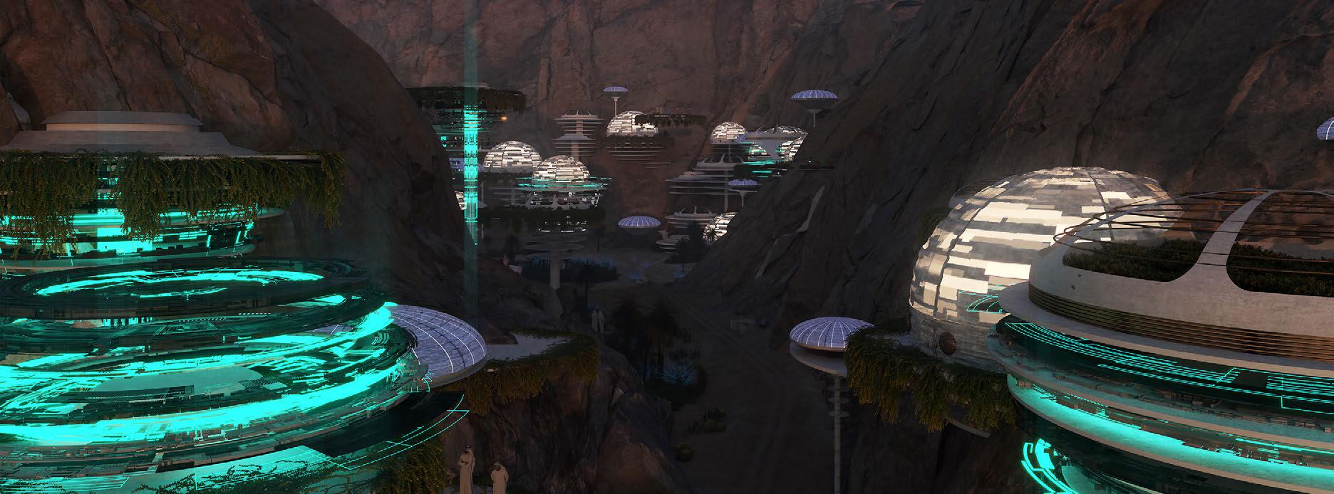 A reinterpretation of a Star Wars village style in a natural setting overlooking the wadi