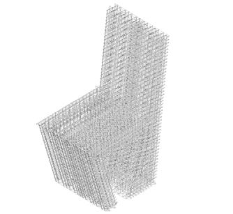 While refining the voxel pattern we were looking into the design of the chair form. Whilst some of the curved forms were quite interesting, it was at this point that we decid ed to implement geometric forms. Not only is it more suitable for the toolpath but we felt that it would better showcase the voxel pattern. By using straight lines it would allow us to really emphasize the different densities of voxels that we had been able to create.