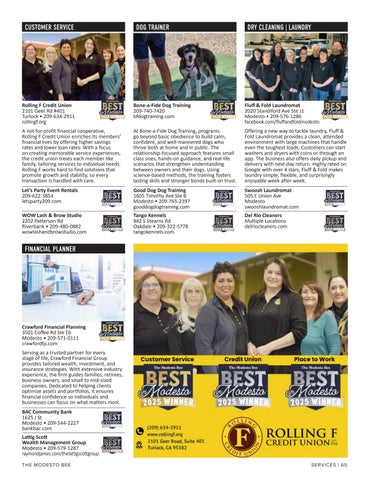 Insurance Agency 3508 Dale Rd Modesto • 209-250-0269 turlockinsurance.com Stewart Kriese Insurance Agency 100 Laurel Ave Oakdale • 209-847-8025 stewartkriese.com