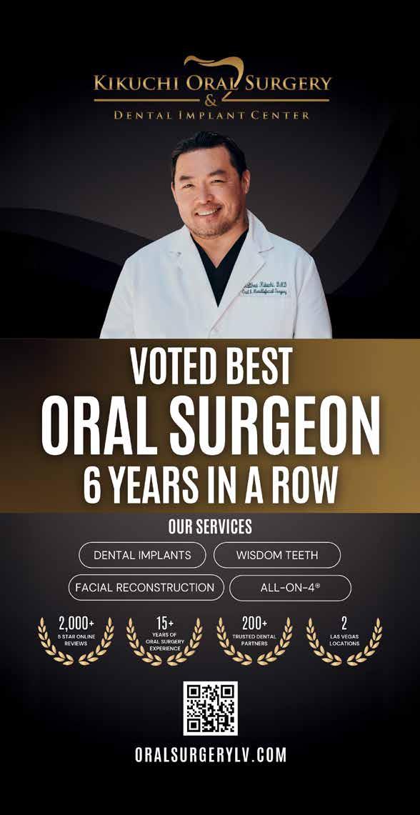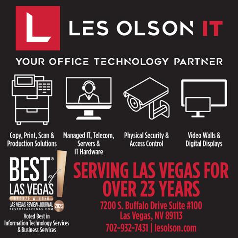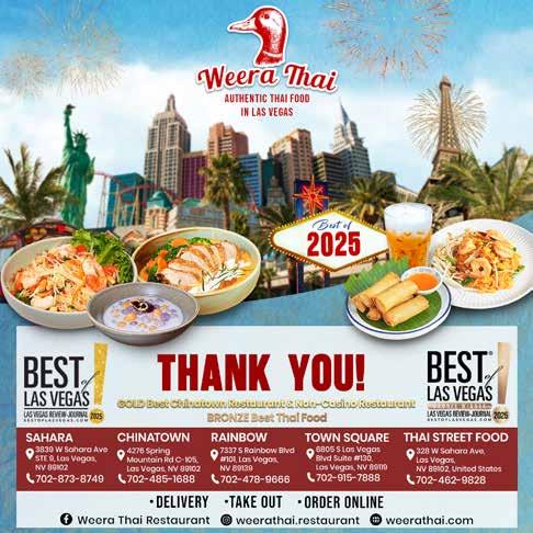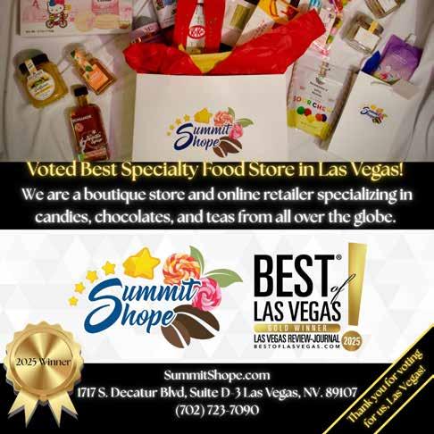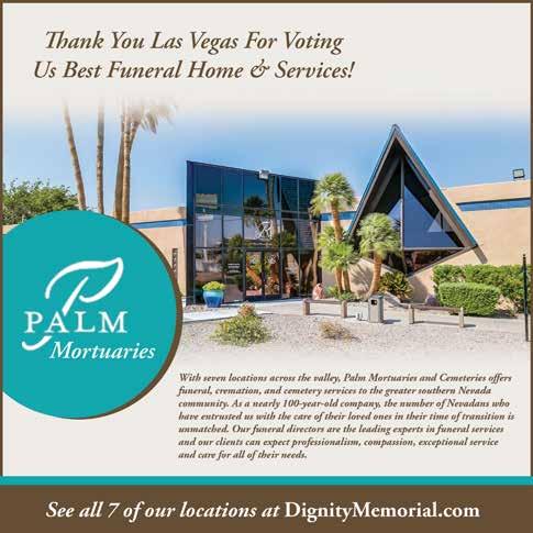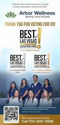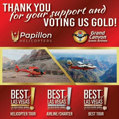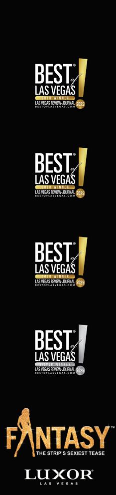 Best of Las Vegas | VOLUME 44 is published as an advertising feature and is distributed to the Sunday subscribers of the Las Vegas Review-Journal, Inc. along with other select locations. This is not a function of or product from the newsroom. To be included in future publications, or to reach our audience, please contact your sales representative, or call 702-383-0388. Winners and ranking was based on independent voting and is not an endorsement by and may not necessarily reflect the opinions of the Las Vegas Review-Journal Inc., NERUS Strategies, LLC or any parent companies. ©2025 Las Vegas Review-Journal, Inc. and NERUS Strategies, LLC. Images used in winner description are used to illustrate the category. Where possible we have used winner’s submitted photography. The Best of Las Vegas and the unique logo are registered trademarks of the Las Vegas Review-Journal, Inc. and may only be used with express, written permission. Content found in this book may not be repurposed or used in any way without express written permission. Best of Las Vegas and BestofLasVegas.com are powered by BestofPrograms.com. Printed in Las Vegas. Please pass along when finished, and recycle when possible.