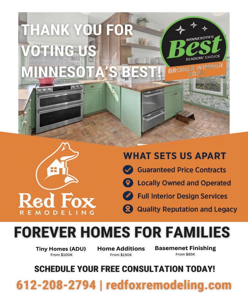 Minnesota’s Best | VOLUME 5 is published as an advertising feature and is distributed to the Sunday subscribers of the Minnesota Star Tribune along with other select locations. This is not a function of or product from the newsroom. To be included in future publications, or to reach our audience, please contact your sales representative, or call 612-673-4000. Winners and ranking were based on independent voting and is not an endorsement by and may not necessarily reflect the opinions of the Minnesota Star Tribune, NERUS Strategies, LLC or any parent companies. ©2025 The Minnesota Star Tribune & NERUS Strategies, LLC. Minnesota’s Best and the unique logo are registered trademarks of the Minnesota Star Tribune and may only be used with express, written permission. Content found in this book may not be repurposed or used in any way without express written permission. Minnesota’s Best and MinnesotasBest.com are powered by BestofPrograms.com.