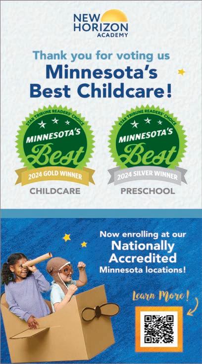 Minnesota’s Best | VOLUME 4 is published as an advertising feature and is distributed to the Sunday subscribers of the Star Tribune along with other select locations. This is not a function of or product from the newsroom. To be included in future publications, or to reach our audience, please contact your sales representative, or call 612-673-4000. Winners and ranking were based on independent voting and is not an endorsement by and may not necessarily reflect the opinions of the Star Tribune, NERUS Strategies, LLC or any parent companies. ©2024 Star Tribune & NERUS Strategies, LLC. Minnesota’s Best and the unique logo are registered trademarks of the Star Tribune and may only be used with express, written permission. Content found in this book may not be repurposed or used in any way without express written permission. Minnesota’s Best and VotedMinnesotasBest.com are powered by BestofPrograms.com.