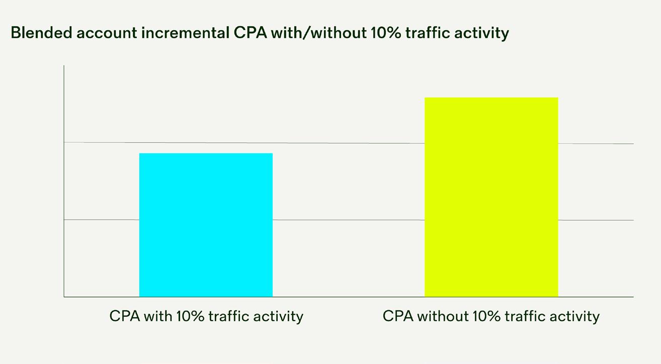 According to aggregated Nest data, investment in as little as 10% of traffic activity drives 28% lower incremental inplatform CPA and 19% higher incremental ROAS when compared against unexposed audiences.