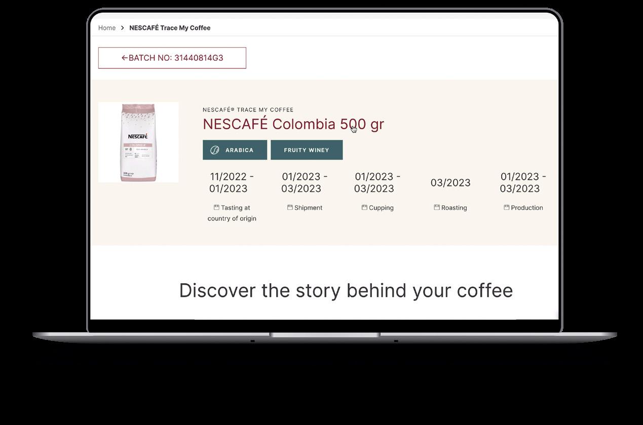 Je ontdekt de oorsprong van je koffie en kunt alle stappen van de reis zien, inclusief waar het branden en het proeven plaatsvond.