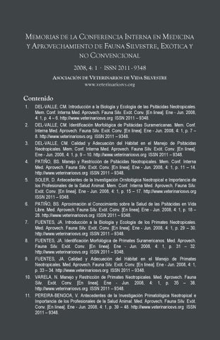 MEMORIAS DE LA CONFERENCIA INTERNA EN MEDICINA Y APROVECHAMIENTO DE FAUNA SILVESTRE, EXÓTICA Y NO CONVENCIONAL 2008, 4: 1 · ISSN 2011 - 9348 ASOCIACIÓN DE VETERINARIOS DE VIDA SILVESTRE www.veterinariosvs.org