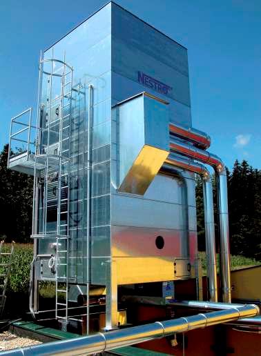 As instalações de filtração NFHS com as suas grandes áreas de filtração em pouco espaço podem aspirar simultaneamente várias máquinas de processamento com uma quan dade de ar até 40.000 m³/h. As baixas velocidades do fluxo e o canto interior do reves mento do filtro para o aparafusamento interior permitem um funcionamento con nuo a vácuo sem danos e desgastes até 4.500 Pa. Aqui não hálugaraferrugem.Oagitadorintegrado permite um armazenamento intermédio dapoeiraeaparascomumvolumediário até26m³.