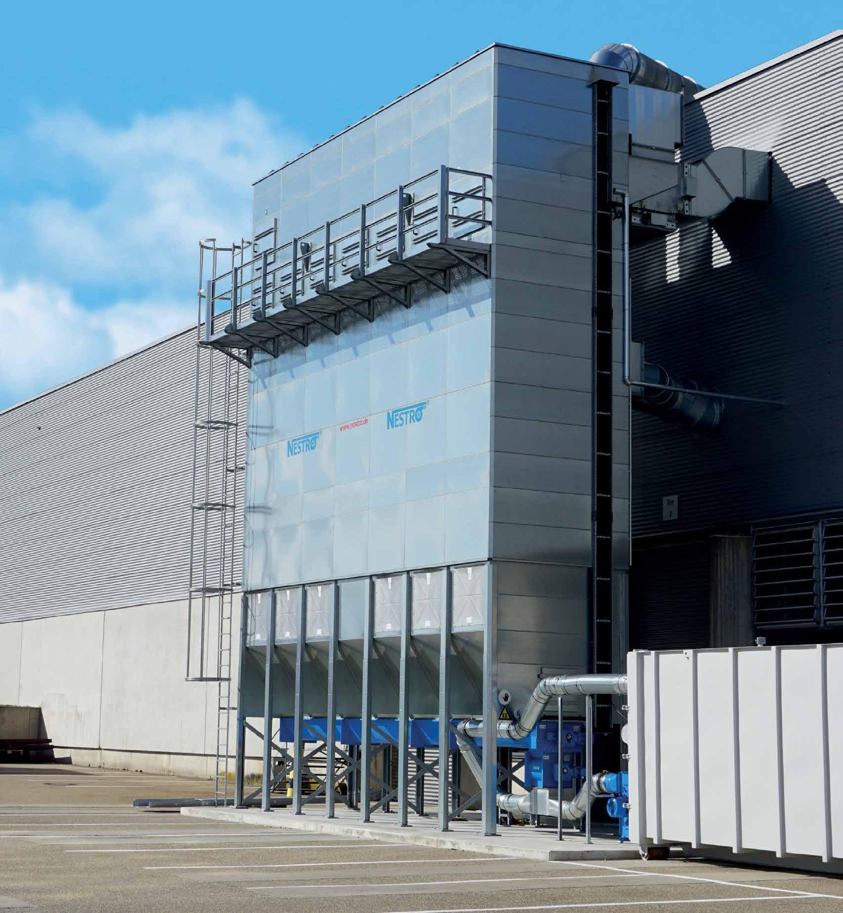 Tělesa filtru NFHS a NFHSU s velkými filtračními plochami ve velmi omezeném prostoru mohou odsávat vzduch z několika obráběcích strojů najednou s množstvím vzduchu až 40 000 m³/h. Nízké rychlosti proudění a vnitřní lemování opláštění filtru až po vnitřní šroubení umožňují trvalý podtlakový provoz bez poškození a opotřebení s tlakem až 4 500 Pa. Zde není prostor pro vznik rzi. Integrované míchadlo umožňuje meziskladování prachu a třísek s denním objemem až 26 m³.