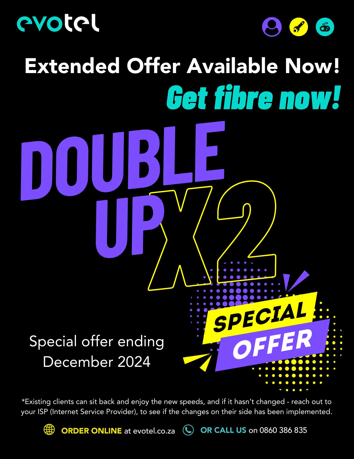 “We are ensuring that we have adequate backup power supply to keep their internet connection active through the worst of loadshedding. In short, you will always have access to Evotel’s fibre internet at home unless you don’t have power at your house.”