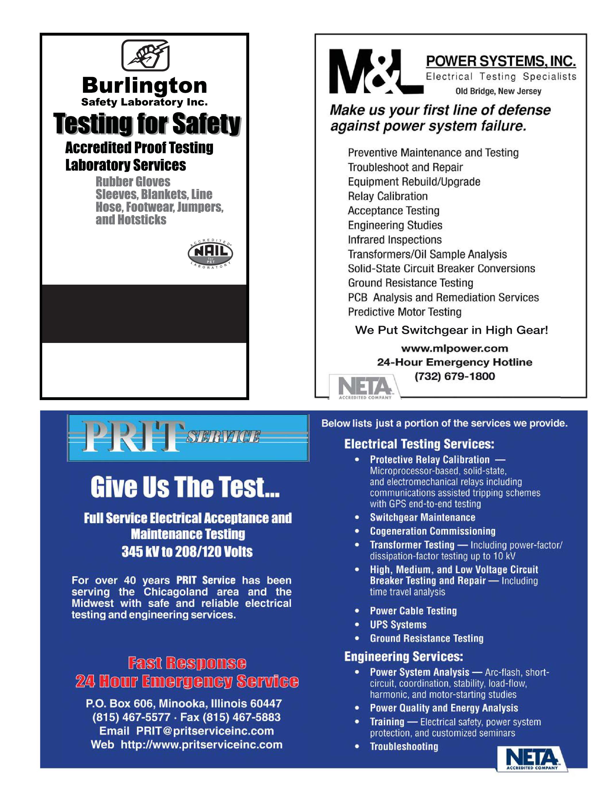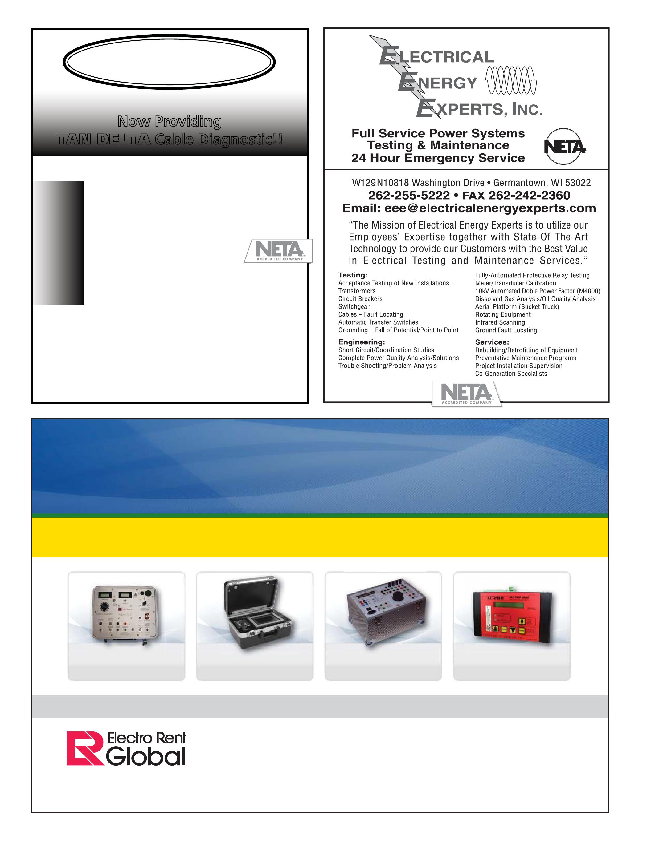 NETA World is published quarterly by the InterNational Electrical Testing Association. Opinions, views and conclusions expressed in articles herein are those of the authors and not necessarily those of NETA. Publication herein does not constitute or imply endorsement of any opinion, product, or service by NETA, its directors, officers, members, employees or agents (herein “NETA”).