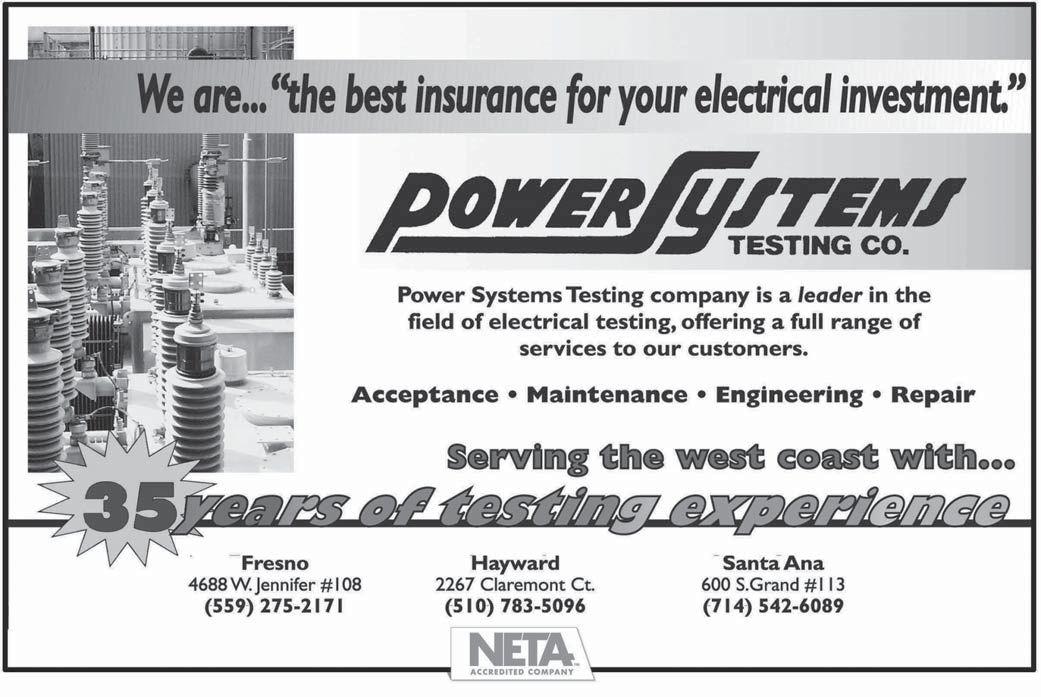 Power Systems Testing Co. 4688 W. Jennifer Ave., Ste. 108 Fresno, CA 93722 (559) 275-2171 ext 15 Fax: (559) 275-6556 dave@pstcpower.com www.powersystemstesting.com