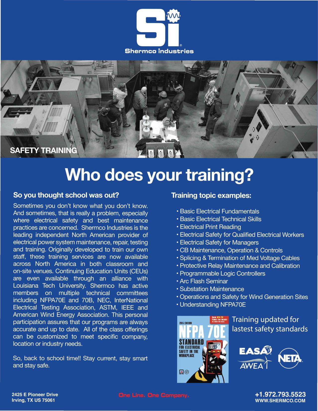Shermco Industries 12000 Nerwork Blvd.,Bldg D,Ste.410 San Antonio, TX 78249 (512) 267-4800 Fax: (512) 267-4808 kewing@shermco.com www.shermco.com