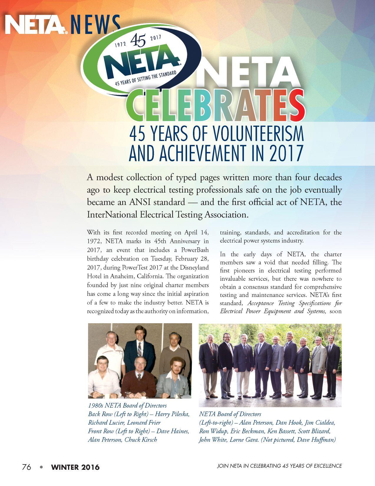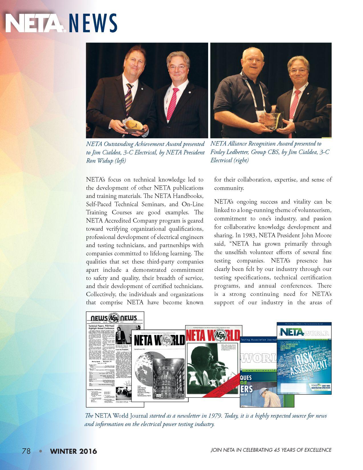 ISSN 2167-3594 NETA WORLD JOURNAL PRINT ISSN 2167-3586 NETA WORLD JOURNAL ONLINE WINTER 2 0 16 PAGE 68 REGISTER TODAY INSIDE! PREVIEW GUIDE CELEBRATE NETA’S 45TH ANNIVERSARY THE FUTURE OF AND PROCESS AUTOMATION IN TEG R ATED PO WE R