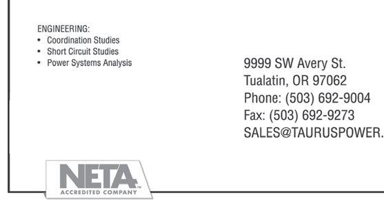 Taurus Power & Controls, Inc. 9999 SW Avery St. Tualatin, OR 97062-9517 (503) 692-9004 Fax: (503) 692-9273 robtaurus@tauruspower.com www.tauruspower.com