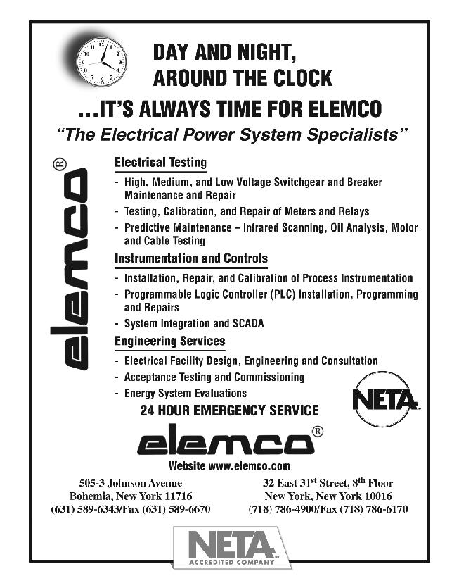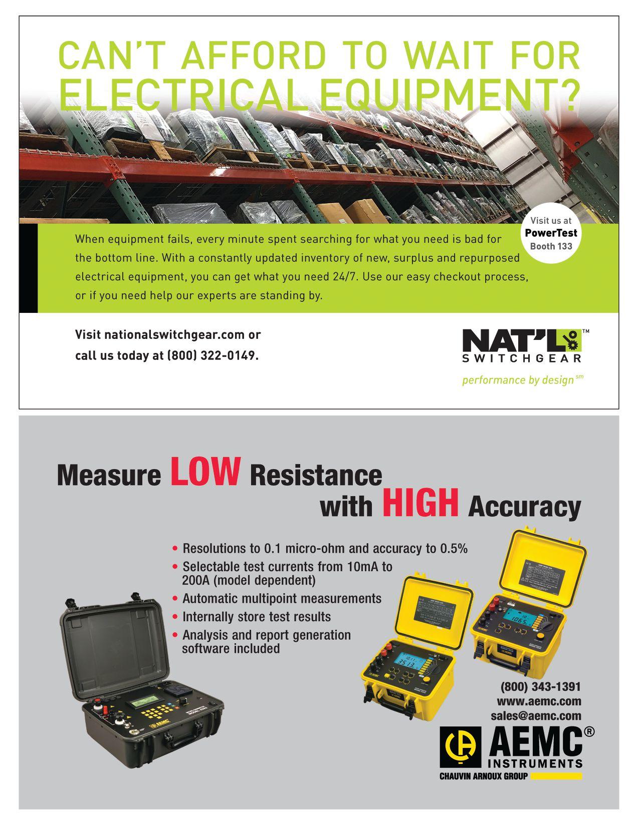 NETA World Journal. INDEPENDENT NETA ACCREDITED COMPANIES Absolute Testing Services, Inc. 41 American Electrical Testing Co., LLC 29 Apparatus Testing and Engineering 120 Burlington Electrical Testing Co. .................... 80 CE Power ........................................ 131 Eastern High Voltage.............................. 120 Electrical Energy Experts, Inc. 6 Electrical Reliability Services (Vertiv) 40 Elemco Testing Co., Inc. 120 EnerG Test 112 Hampton Tedder .................................. 30 Harford Electrical Testing Co. ...................... 80 High Voltage Maintenance Corp. ................... 31 Industrial Electric Testing, Inc. 119 Infra-Red Building and Power Service, Inc. 112 National Field Services 104 Nationwide Electrical Testing, Inc. ................. 123 North Central Electric, Inc. .......................... 6 Potomac Testing, Inc. ............................. 110 Power Products & Solutions, Inc. 14 Power Systems Testing Co. 119 Power Testing and Energization, Inc. 106 Scott Testing Inc 40 Shermco Industries.................................. 9 Sigma Six Solutions, Inc. ........................... 104 Taurus Power & Controls, Inc. ...................... 21 Tony Demaria Electric, Inc. 99 Utilities Instrumentation Service 21 MANUFACTURERS AND OTHER SERVICE PROVIDERS Advanced Test Equipment Rentals (ATE Corp) .............. 81 AEAMC ................................................. 103 AEMC ................................................... 85 Aero Tech Laboratories 94 Ampteks 123 Arbiter Systems 62 AVO Training Institute, Inc. 23 BCS Switchgear ........................................... 15 Belyea Company .......................................... 124 Bullock Breakers ........................................... 71 Burlington Safety Laboratory, Inc. 106 CBS ArcSafe 103 Dranetz 94 ECP Solutions ............................................ 113 Electricity Today ........................................... 73 Group CBS, Inc. ........................................... 93 High Voltage Inc. 14 High Voltage Electric Service, Inc. 40 Hioki USA 87 HV Diagnostics, Inc. 71 Intellirent .............................................. 56, 57 Jud Walker ................................................ 98 Megger .................................... Inside Front Cover Monster Electrical 72 National Switchgear 85 NETA ANSI/NETA MTS 102 NETA PowerTest 2019 Thank You Sponsors ................. 25 NETA PowerTest 2020 Alliance ............................ 121 NETA PowerTest 2020 Call for Exhibitors ................... 95 NETA PowerTest 2020 Call for Speakers 63 NETA PowerTest 2020 Save the Date 8 OMICRON Electronics Corp. USA Back Cover Orbis Engineering Field Services LTD 94 Phenix Technologies, Inc. .................................. 124 Protec Equipment Resources ................................. 5 Quality Switchgear......................................... 86 Raytech Inside Back Cover Solid State Exchange 24 Southland Electrical Supply 31 Technitrol, Inc. 86 Thyritronics, Inc............................................ 62 Trace Electrical Services & Testing ........................... 13 Utility Relay Company 107 Vacuum Interrupters, Inc. 93