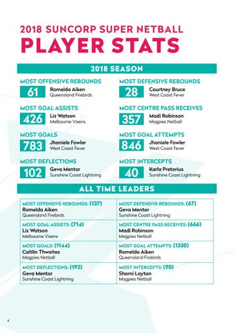 Sunshine Coast Lightning MOST CENTRE PASS RECEIVES: (666)