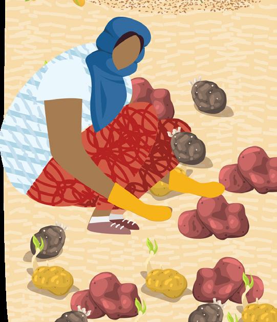 A network of Andean potato custodians conserves hundreds of native varieties through a benefit-sharing model that provides direct payments, youth training, and market development. This farmerled governance system builds trust while sustaining agrobiodiversity critical for climate adaptation.