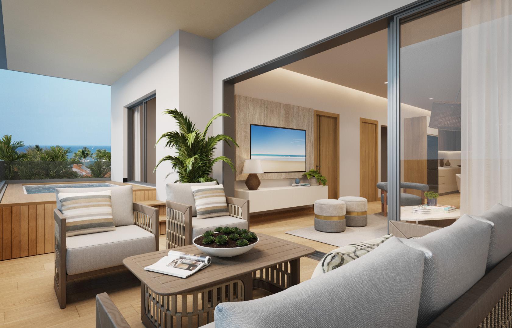 Apartamentos: Sun Palace At Los Corales, los apartamentos han sido diseñados pensando en el lujo, la comodidad y la exclusividad. Situados en los pisos superiores del complejo, estos 7 apartamentos representan una oportunidad única para vivir o invertir en una de las zonas más codiciadas del Caribe.