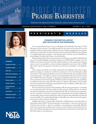 The Prairie Barrister is published quarterly by the Nebraska Association of Trial Attorneys. Inquiries regarding submission of articles and advertising should be directed to Deborah Neary, Executive Director.