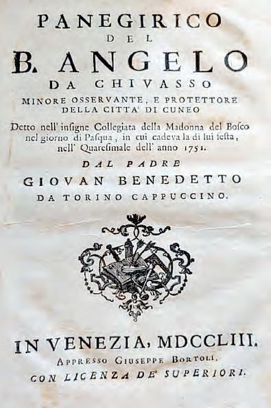 Il programma completo Come detto, gli eventisi sono ufficialmente aperti domenica 27 agosto con il tradizionale appuntamentoreligioso: inDuomodon Davide Smiderle ha presieduto la solenne celebrazione eucaristica delle ore 10 in onore del Beato AngeloCarletti.Lafunzionereligiosaè poi proseguita conla processione con il simulacro del Beato che ha attraversato le vie del centro. Lunedì 28agosto afare daprotagonistadella seratanellachiesa della confraternita di San Giovanni Battista è stata la Società Storica Chivassese direttadal professor Fabrizio Spegis.In questaoccasione èstato presentatoil volume “Il Sacramento della penitenza.