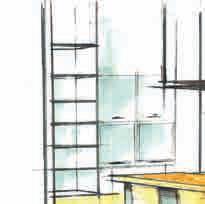 mente al bucato, separato dalla cucina vera e propria mediante tavolati in cartongesso che fungono anche da elementi contenitivi della dispensa. L’asciugatrice e l’asse da stiro, invece, sono completamente integrati e “scompaiono” dentro le basi della parete attrezzata.