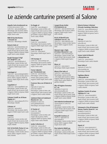 De Baggis srl Cantù (Co) - www.debaggis.it Merceologia: Camere da letto; Letti singoli; Armadi; Sale da pranzo, tinelli e soggiorni; Mobili da ingresso; Mobili per bambini e ragazzi; Mobili singoli; Tavoli e sedie; Imbottiti Desalto spa Cantù (Co) - www.desalto.it Merceologia: Sale da pranzo, tinelli e soggiorni; Mobili singoli; Tavoli e sedie Dexo Orsenigo srl Cantù (Co) - www.dexo.it Merceologia: Mobili singoli; Tavoli e sedie F.lli Orsenigo srl Cantù (Co) - www.orsenigo.com Merceologia: Sale da pranzo, tinelli e soggiorni; Mobili da ingresso; Mobili singoli; Tavoli e sedie Former Industria per l’Arredamento spa Cantù (Co) - www.former.it Merceologia: Camere da letto; Armadi; Sale da pranzo, tinelli e soggiorni; Mobili singoli; Tavoli e sedie Francesco Nesa snc di Roberto & Ivan Vighizzolo di Cantù (Co) www.nesa-mobili.it Merceologia: Camere da letto; Letti singoli; Armadi; Sale da pranzo, tinelli e soggiorni; Tavoli e sedie; Imbottiti Galimberti Mario di Galimberti Massimo & C. snc Mirabello di Cantù (Co) www.galimbertimario.it Merceologia: Letti singoli; Imbottiti JC Passion srl Cantù (Co) - Italia www.jcpassion.it Merceologia: Camere da letto; Letti singoli; Sale da pranzo, tinelli e soggiorni; Mobili da ingresso; Mobili singoli; Tavoli e sedie; Imbottiti Jumbo Collection srl Cantù (Co) - www.jumbo.it Merceologia: Camere da letto; Letti singoli; Armadi; Sale da pranzo, tinelli e soggiorni; Mobili da ingresso; Mobili per bambini e ragazzi; Mobili singoli; Tavoli e sedie; Imbottiti