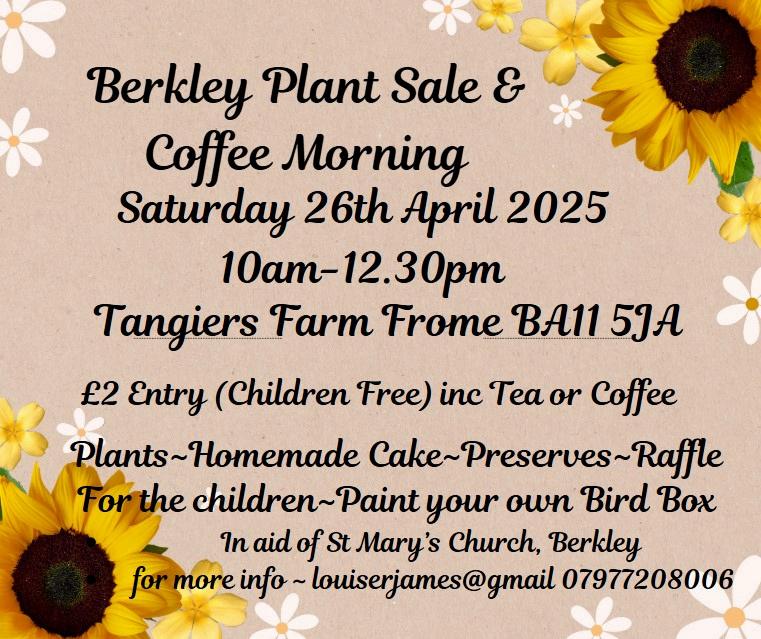 The Spring Coffee Morning this year will be held on Saturday 12th April from 10.00am till 12 noon at The Old Carthouse, Flintford Farm, Frome BA11 5LD.