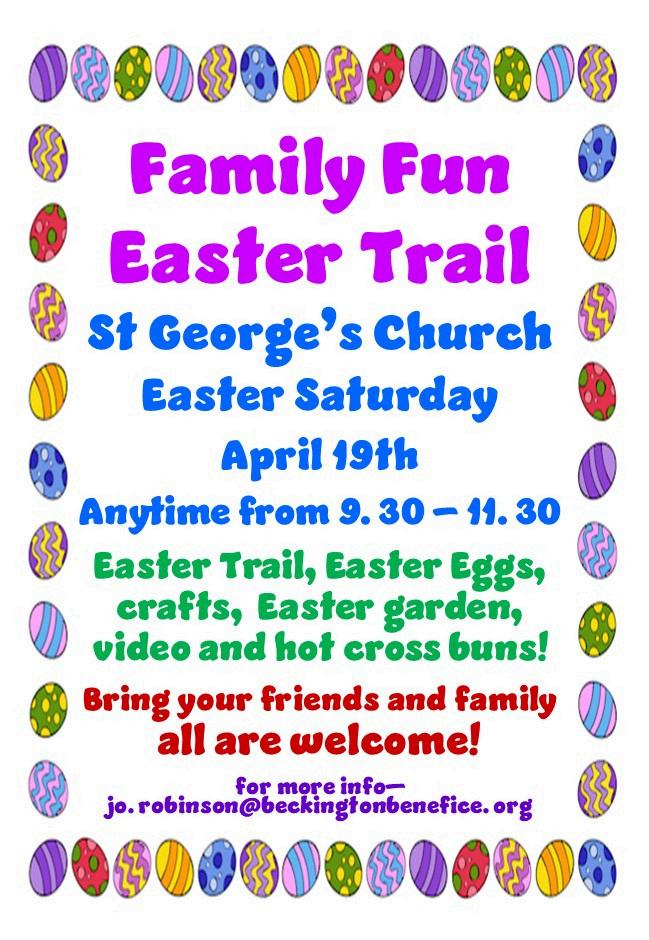 Please support our Easter Eggstravaganza to be held on Sunday 6th April 10.30am – 12.30pm, at the Hall. All profits to go to the playground fund.