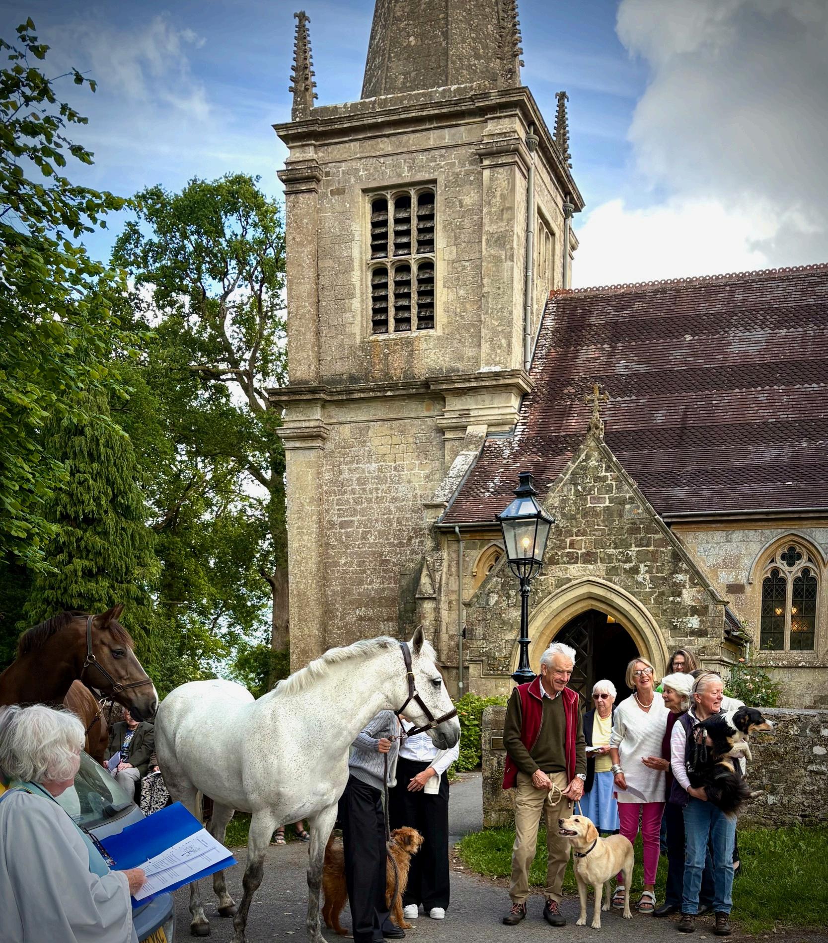 Rogation Sunday on 1st June was a lovely occasion, starting outside the church with various well behaved dogs in attendance, Rob and Lara Williams' horses and Willow's pony - see photograph above (courtesy of Deborah Bee). No sheep this year - no doubt they were at the Bath and West Show!